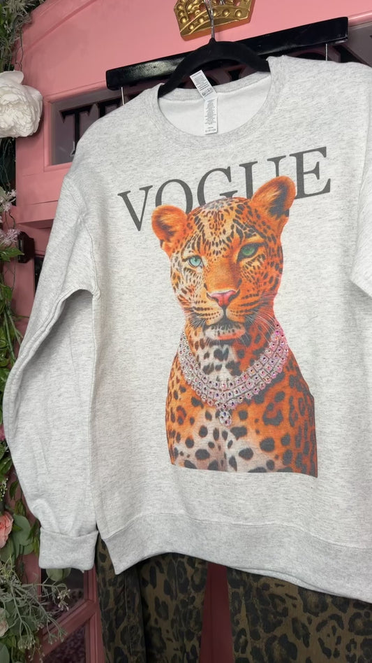 Vogue Leopard Rhinestone Crew