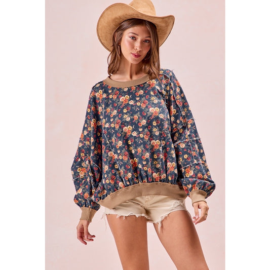 Washed Floral Denim Top
