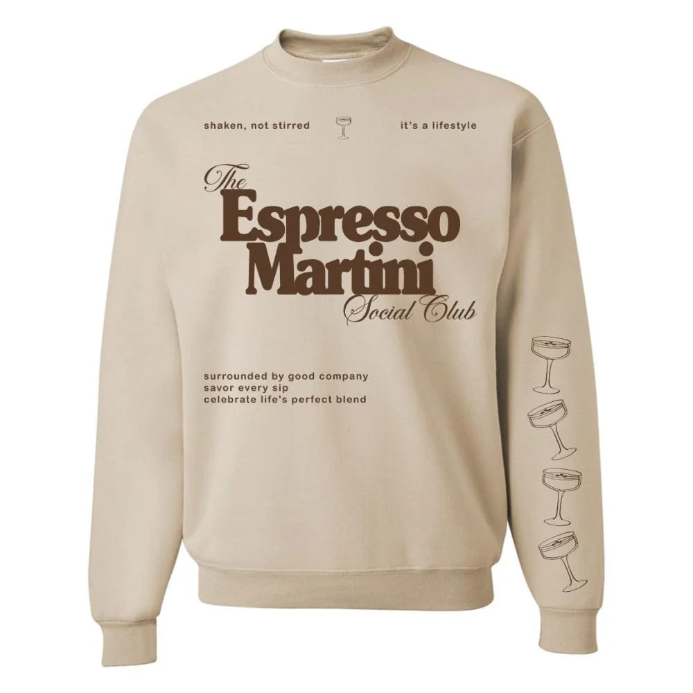 Soft, relaxed, and effortlessly chic, this sweatshirt makes a statement without even trying. Featuring the playful “Espresso Martini Social Club” graphic and subtle sleeve glass line art, it’s the perfect blend of comfy + cool. Because let’s be real — espresso martinis aren’t just a drink, they’re a whole lifestyle.
